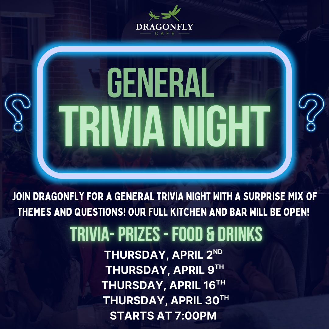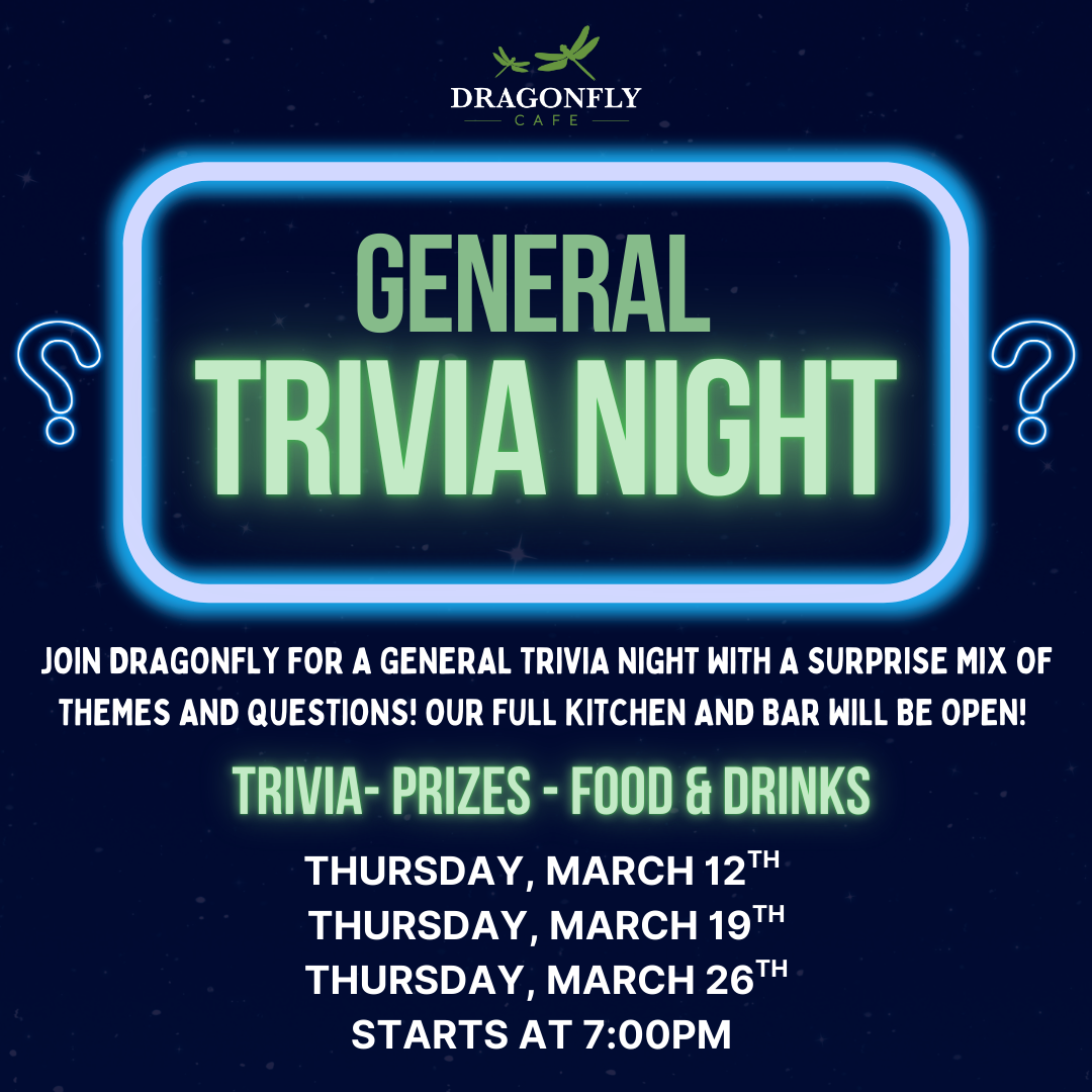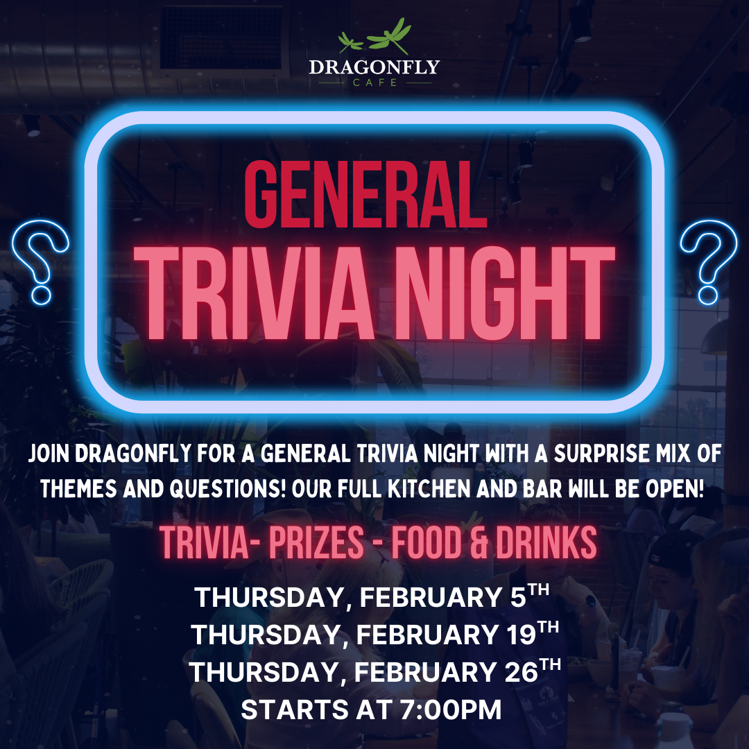 Join Dragonfly for a unique General Trivia Night with a surprise mix of themes and questions! Our full kitchen and bar will be open!